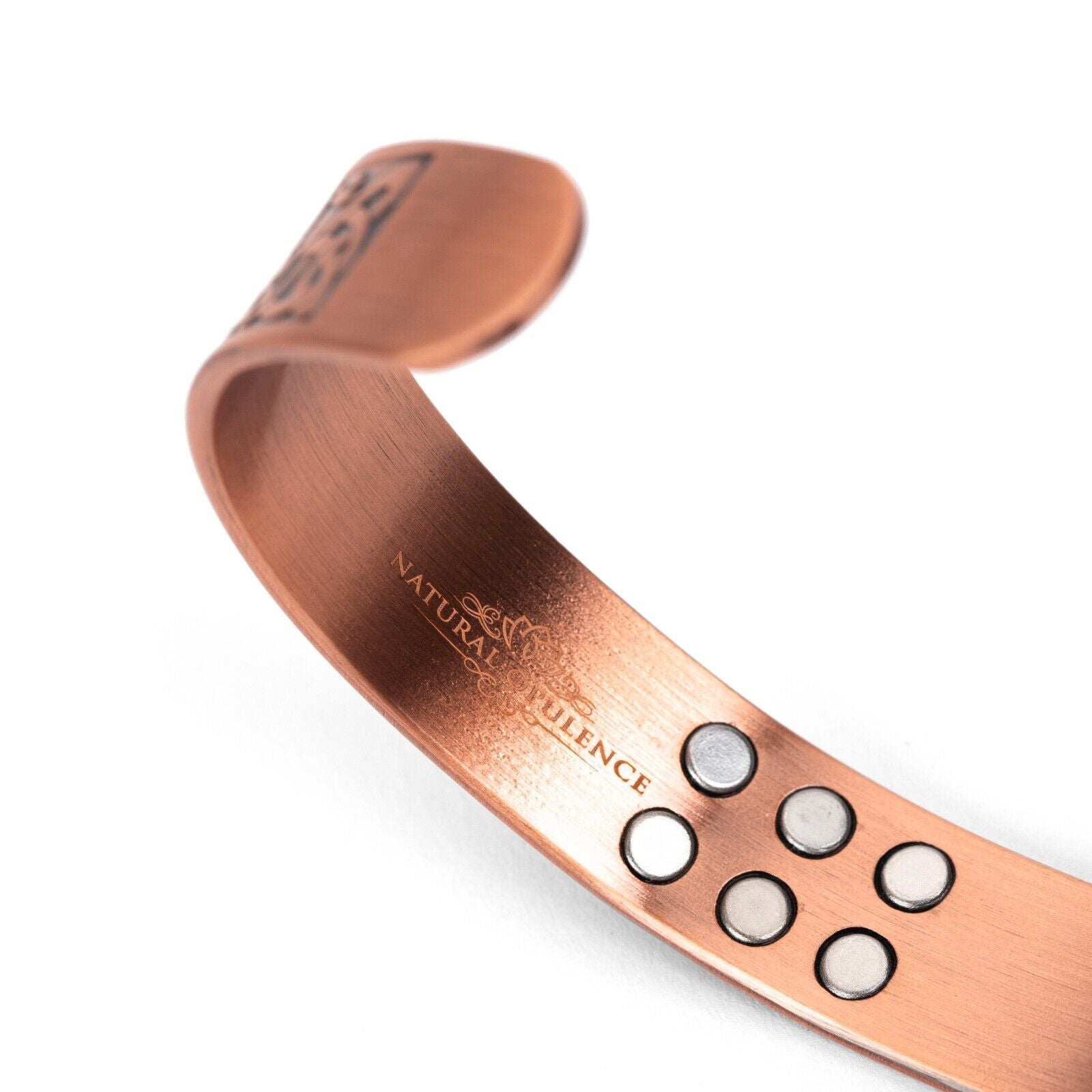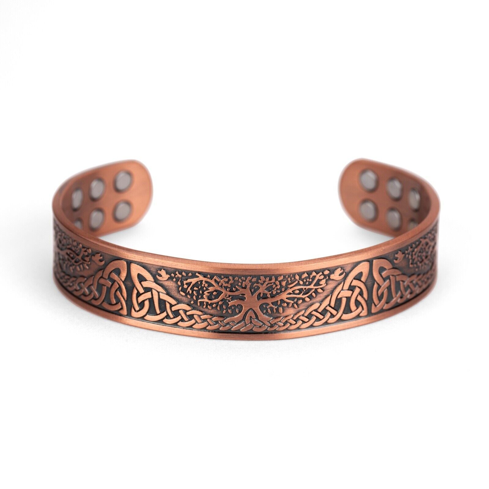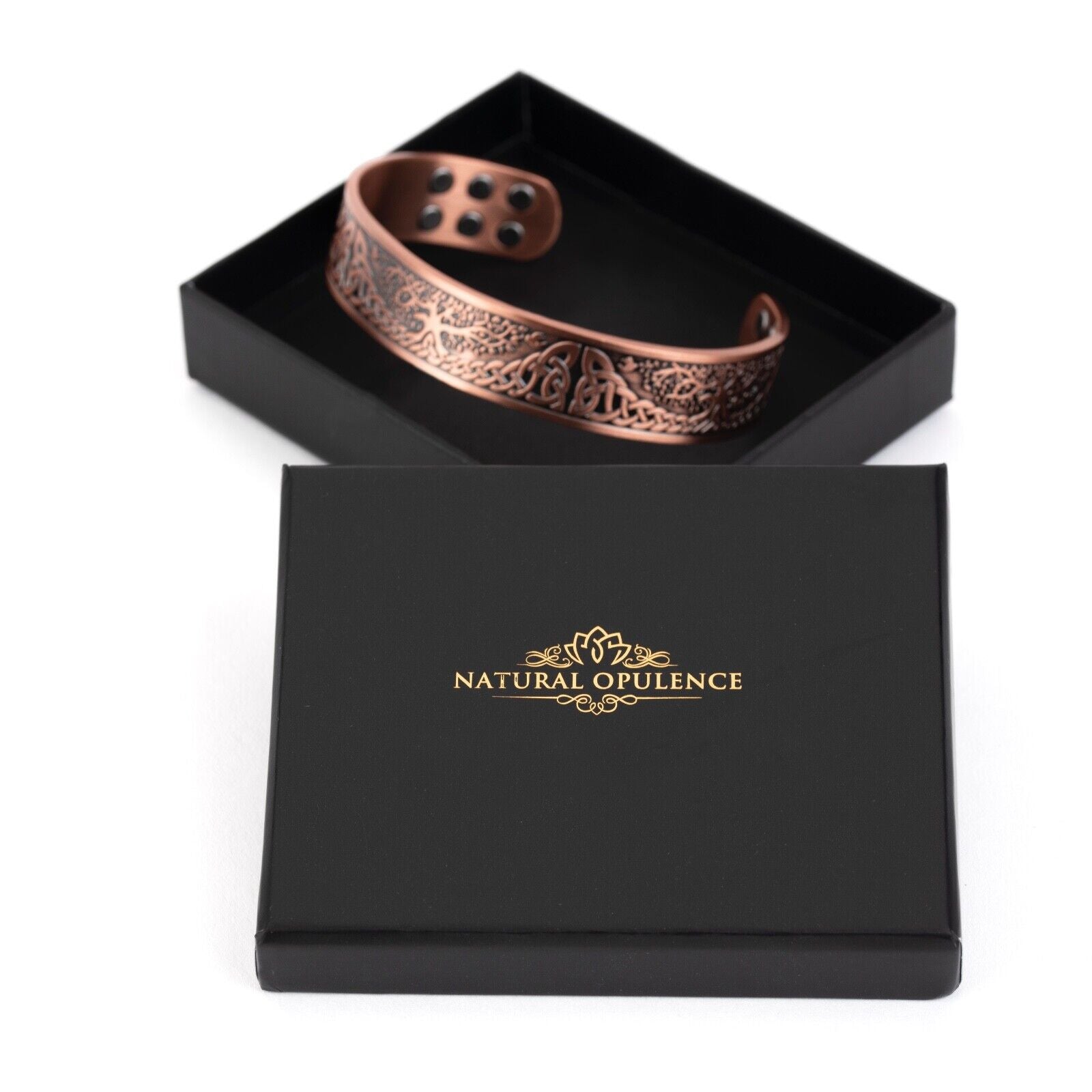 This Pure Solid Copper Magnetic Branded Bracelet Bangle comes with market leading EIGHTEEN high strength neodymium magnets!!! A wonderful addition to any jewellery collection. The charming Tree of Life design and magnetic power make it a stylish and practical option for everyday wear. Crafted by Natural Opulence, this bracelet is a perfect gift for anyone who loves elegant accessories.