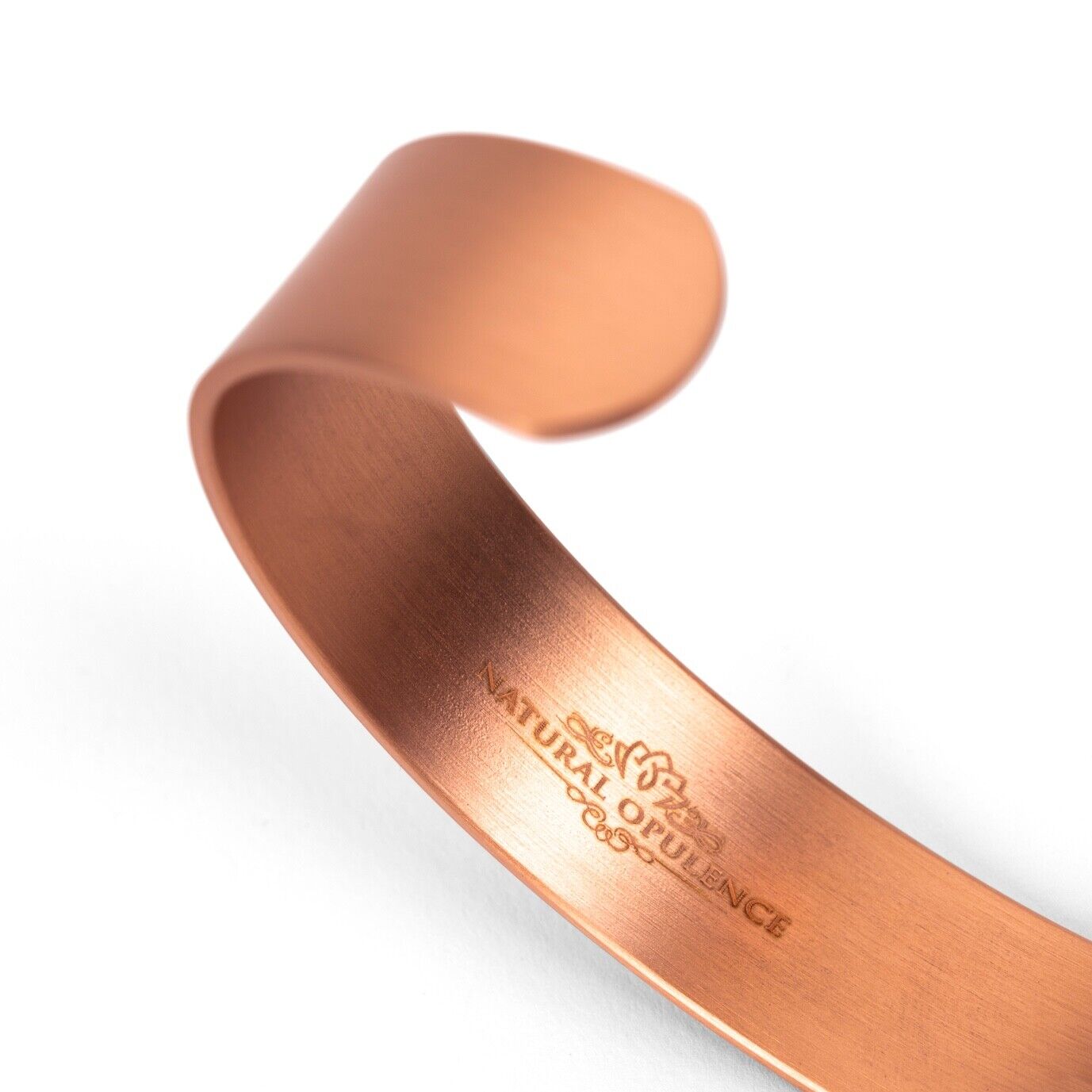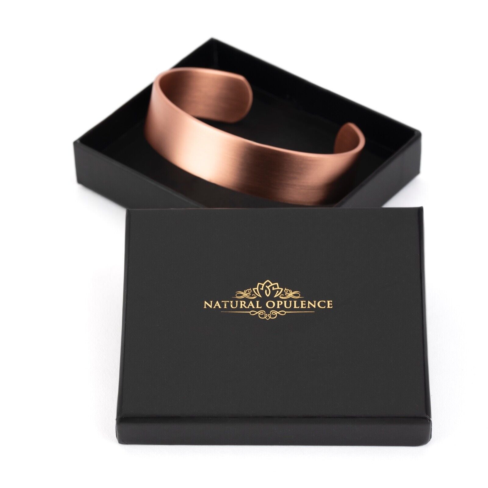 Pure Solid 99.9% Copper Branded Bracelet Bangle. A wonderful addition to any jewellery collection. The charming plain design makes it a stylish and practical option for everyday wear. Crafted by Natural Opulence, this bracelet is a perfect gift for anyone who loves elegant accessories.